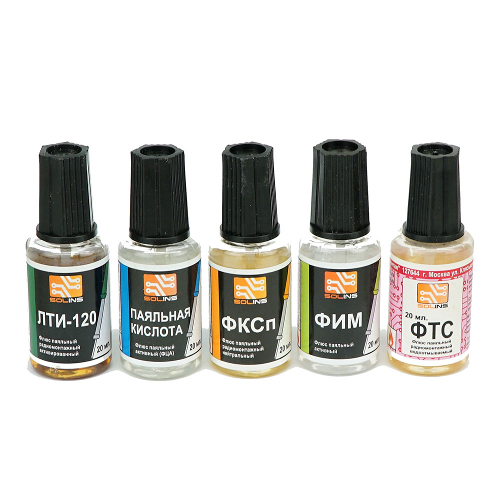 Флюс паяльный SOLINS ЛТИ-120 спирто-канифольный активированный флакон 22мл с кисточкой (1шт)